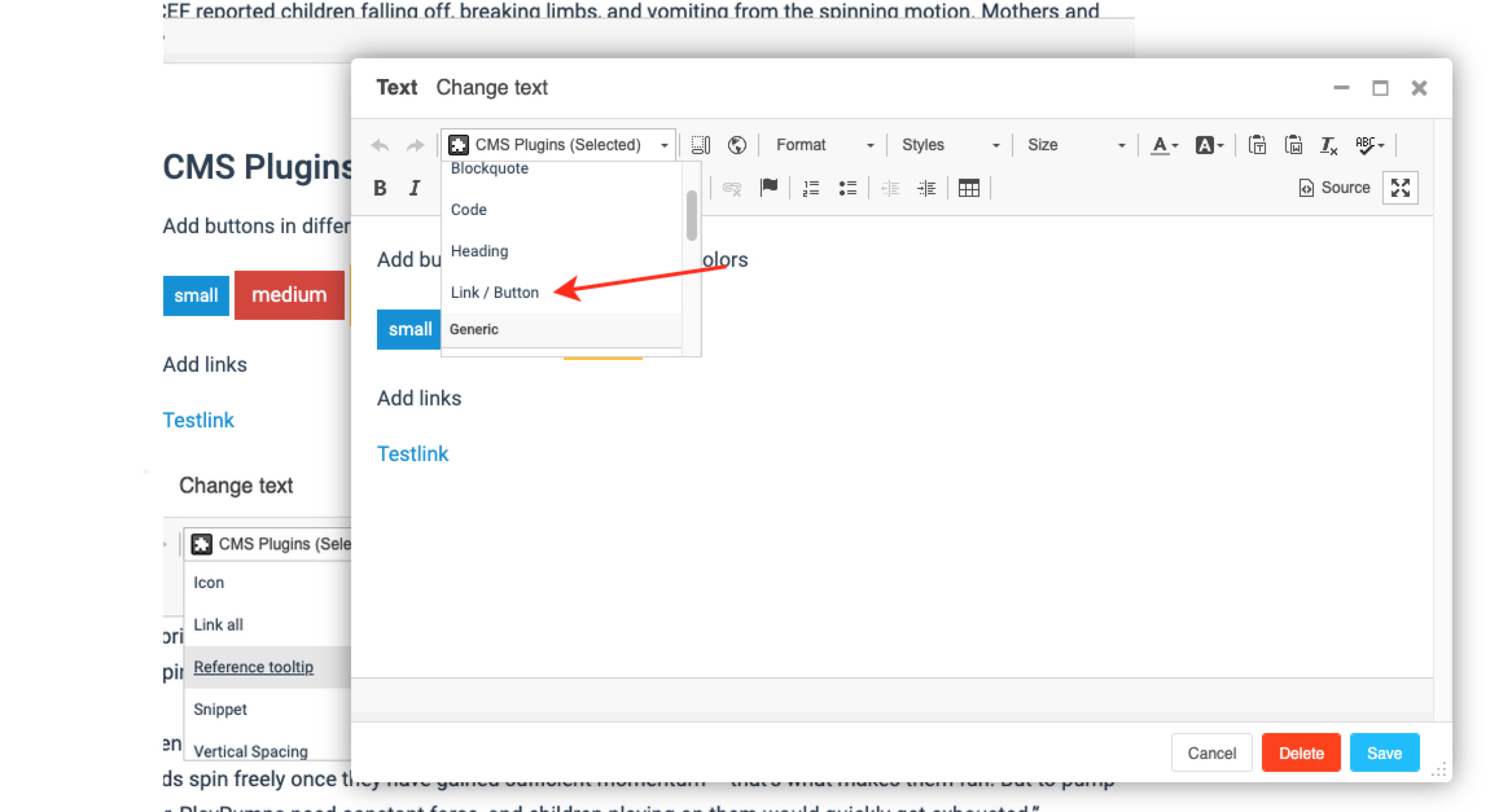 CMS Plugins: Links & Buttons