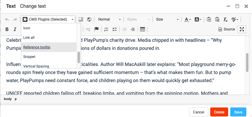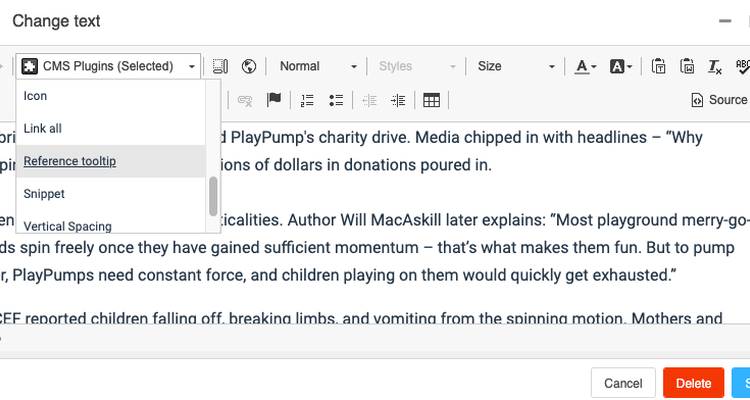 CMS Plugins: Reference popup with mouseover effect